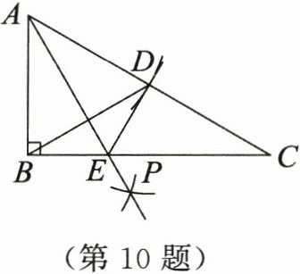 10. 如图,在$\triangle ABC$中,$∠ABC= 90^{\circ },∠C= 30^{\circ }$,以点A为圆心,以AB的长为半径作弧交AC于点D,连接BD,再分别以点B,D为圆心,以大于$\frac {1}{2}BD$的长为半径作弧,两弧交于点P,作射线AP交BC于点E,连接DE.有下列结论:①$BE= DE$;②DE垂直平分AC;③$\frac {S_{\triangle EDC}}{S_{\triangle ABC}}= \frac {\sqrt {3}}{3}$;④$BD^{2}= BC\cdot BE$.其中正确的有 ()