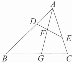 本题可先证明$\triangle ADE\sim\triangle ACB$,得出$\angle ADE = \angle C$,再结合$AG$平分$\angle BAC$证明$\triangle ADF\sim\triangle ACG$,最后根据相似三角形对应边成比例得到$\frac{AD}{DF}=\frac{AC}{CG}$。