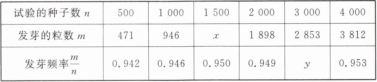 (2) 任取一粒这种植物种子,估计它能发芽的概率是______(结果保留小数点后两位);