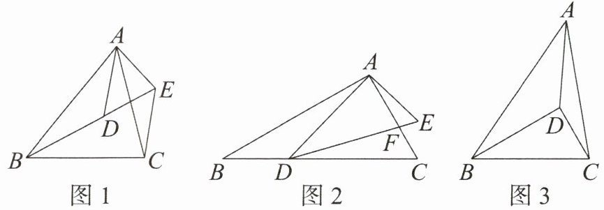 1.【问题背景】如图 1,已知$\triangle ABC\backsim \triangle ADE$,求证:$\triangle ABD\backsim \triangle ACE$。