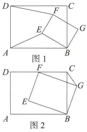 2. 如图 1,矩形$EBGF和矩形ABCD$共顶点,且绕着点$B$顺时针旋转,满足$\frac {BC}{AB}= \frac {BG}{BE}= \frac {3}{4}$。