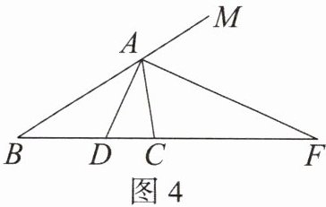 【拓展延伸】(3)如图 4,在$\triangle ABC$中,$AD平分\angle BAC$,$BC的延长线交\triangle ABC外角平分线AF于点F$.若$BD= 3$,$CF= 6$,求$CD$的长.