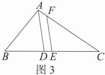 【直接应用】(2)如图 3,在$\triangle ABC$中,$E是BC$的中点,$AD是\angle BAC$的平分线,$EF// AD交AC于点F$.若$AB= 5$,$AC= 7$,求线段$CF$的长.