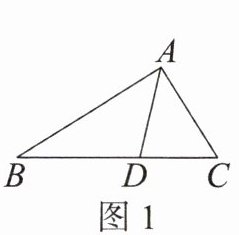 材料:三角形的内角平分线定理:如图 1,在$\triangle ABC$中,$AD平分\angle BAC$,交$BC于点D$,则$\frac {AB}{AC}= $ $\frac {BD}{CD}$.下面是这个定理的部分证明过程.