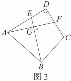 (2)如图 2,若$AD = AB$,$BC = CD = 6$,$\angle ADC = 90^{\circ}$,请直接写出$\frac{BE}{AF}$的值。