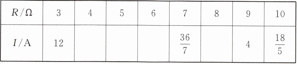 | $R/Ω$ | 3 | 4 | 5 | 6 | 7 | 8 | 9 | 10 |