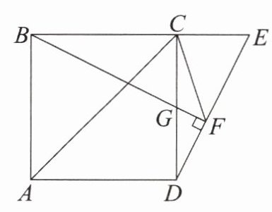 3. 如图,四边形 $ABCD$ 是边长为 $2$ 的正方形,且 $E$ 是边 $BC$ 延长线上一点,过点 $B$ 作 $BF \perp DE$ 于点 $F$,交 $CD$ 于点 $G$。