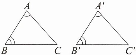 根据三角形相似的判定定理:两角分别相等的两个三角形相似,可得$\triangle ABC\backsim\triangle A'B'C'$。