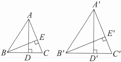 又因为$AD$,$BE$是$\triangle ABC$的高,$A'D'$,$B'E'$是$\triangle A'B'C'$的高,所以$\angle ADB=\angle A'D'B' = 90^{\circ}$,$\angle BEA=\angle B'E'A' = 90^{\circ}$。