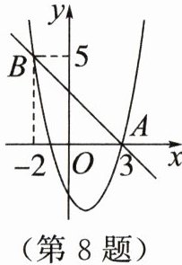 8. 如图,在平面直角坐标系中,直线$y _ { 1 } = m x + n ( m \neq 0 )与抛物线y _ { 2 } = a x ^ { 2 } + b x - 3 ( a \neq 0 )相交于A$,$B$两点,当$y _ { 1 } > y _ { 2 }$时,$x$的取值范围是 ()