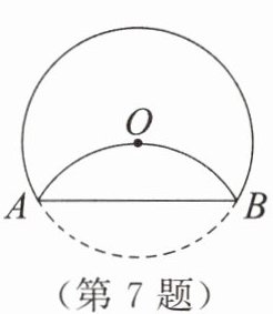 7. 如图,$\odot O$的半径为4,若将$\odot O$的一部分沿着弦AB翻折,劣弧恰好经过圆心O,则折痕AB的长为 (