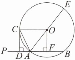 6. 如图,已知直线PA交$\odot O$于A,B两点,AE是$\odot O$的直径,点C为$\odot O$上一点,且AC平分$∠PAE$,过点C作$CD⊥PA$,垂足为D,连接OC,过点O作$OF⊥AB$于点F.
