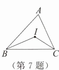 7. 如图,在△ABC中,∠A= 68°。若点I是△ABC的内心,则∠BIC的度数为(