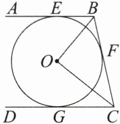 9. (教材$P_1_2_5T_1_5$变式)如图,直线AB,BC,CD分别与⊙O相切于点E,F,G,且AB//CD,OB= 3cm,OC= 4cm。求: