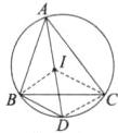 10. (教材$P_1_2_4T_1_3$改编)如图,点I是△ABC的内心,AI的延长线交△ABC的外接圆于点D。