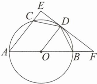 4. 如图,已知 AB 为$\odot O$的直径,AC 是$\odot O$的弦,D 是$\overset{\frown}{BC}$的中点,过点 D 作$\odot O$的切线,分别交 AC,AB 的延长线于点 E 和点 F,连接 CD,BD.
