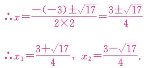 $(4)x_1 = \frac{3 + \sqrt{17}}{4}$,$x_2 = \frac{3 - \sqrt{17}}{4}$。