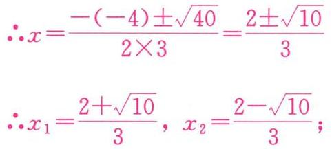 (3) $x_1 = \frac{2 + \sqrt{10}}{3}$,$x_2 = \frac{2 - \sqrt{10}}{3}$;