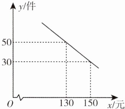 将$(130,50)$,$(150,30)$代入$y = kx + b$中,可得$\begin{cases}130k + b = 50 \\150k + b = 30\end{cases}$。