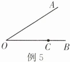 例5. 已知$\angle AOB=30^{\circ}$,点$C$在射线$OB$上,$OC=4$. 若以$C$为圆心,$r$为半径的圆与射线$OA$有两个不同的交点,则$r$的取值范围是__________.