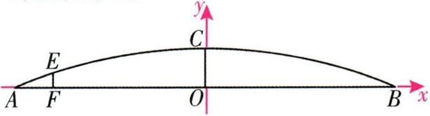 4. 如图是一个抛物线形拱桥的示意图,桥的跨度AB= 100m,支撑桥的是一些等距的立柱,相邻立柱的水平距离为10m(不考虑立柱的粗细),其中距A点10m处的立柱FE的高度为3.6m.