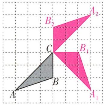 3. [典型习题]分别画出△ABC绕点C逆时针旋转90°和180°后的$△A_1B_1C$和$△A_2B_2C.$