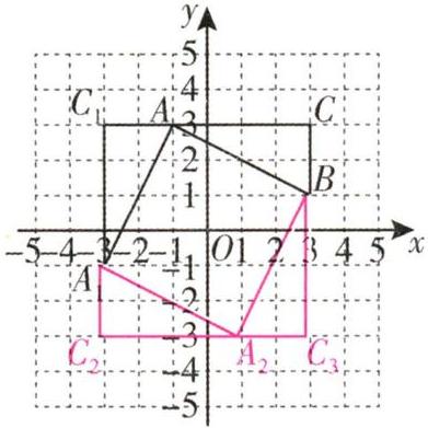 2. [变式]如图所示,在平面直角坐标系中,有一个Rt△ABC,且A(-1,3),B(3,1),C(3,3),已知$△A_1AC_1$是由△ABC旋转得到的.