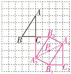 (3)在(1)和(2)的条件下,四边形$A_1B_1A_2B_2$是否为中心对称图形?若是,请在图中标出它的对称中心P;若不是,请用所学知识简要说明理由.