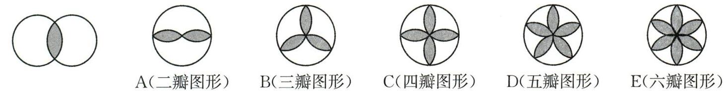由一个“花瓣”及圆组成的图形称之为花瓣图形. 下面是一些由“花瓣”和圆组成的图形.