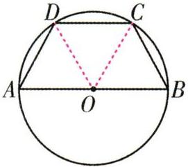 7. 如图,⊙O的半径为2cm,且AB是⊙O的直径,C,D是⊙O上的两点,若$\overset{\frown}{AD}$= $\overset{\frown}{DC}$= $\overset{\frown}{CB}$,求四边形ABCD的周长.