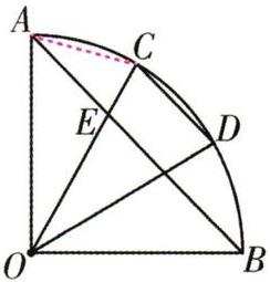 8. 如图,∠AOB= 90°,C,D是以点O为圆心的$\overset{\frown}{AB}$的三等分点,AB交OC于点E.