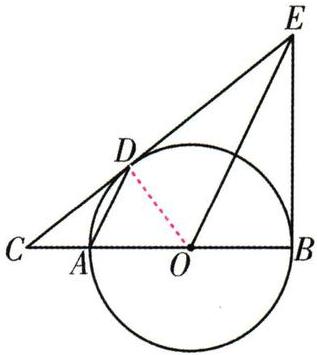 连接$OD$,因为$CD$是$\odot O$切线,所以$OD\perp CD$,$\angle ODE = 90^{\circ}$。