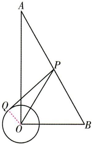 7. 如图,在Rt△ABO中,∠AOB= 90°,∠B= 60°,OA= 6,⊙O的半径为1,点P是AB边上的动点,连接OP,过点P作⊙O的一条切线PQ,点Q为切点,求PQ的最小值.