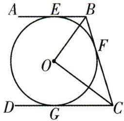 7. 如图,AB,BC,CD分别与⊙O相切于点E,F,G,且AB//CD,OB= 6cm,OC= 8cm.求BE+CG的长.
