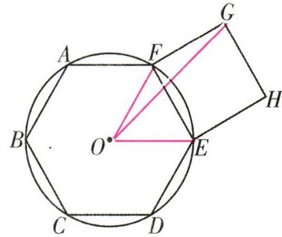 8. 如图,$\odot O$的半径为r,六边形ABCDEF是圆的内接正六边形,四边形EFGH是正方形.