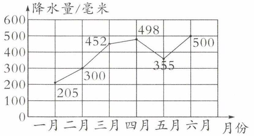 3. 下图是某地2023年上半年月降水量统计图,根据下图回答问题。