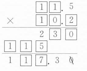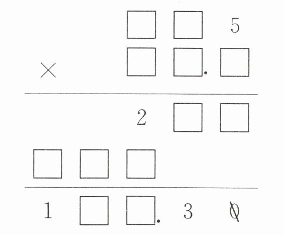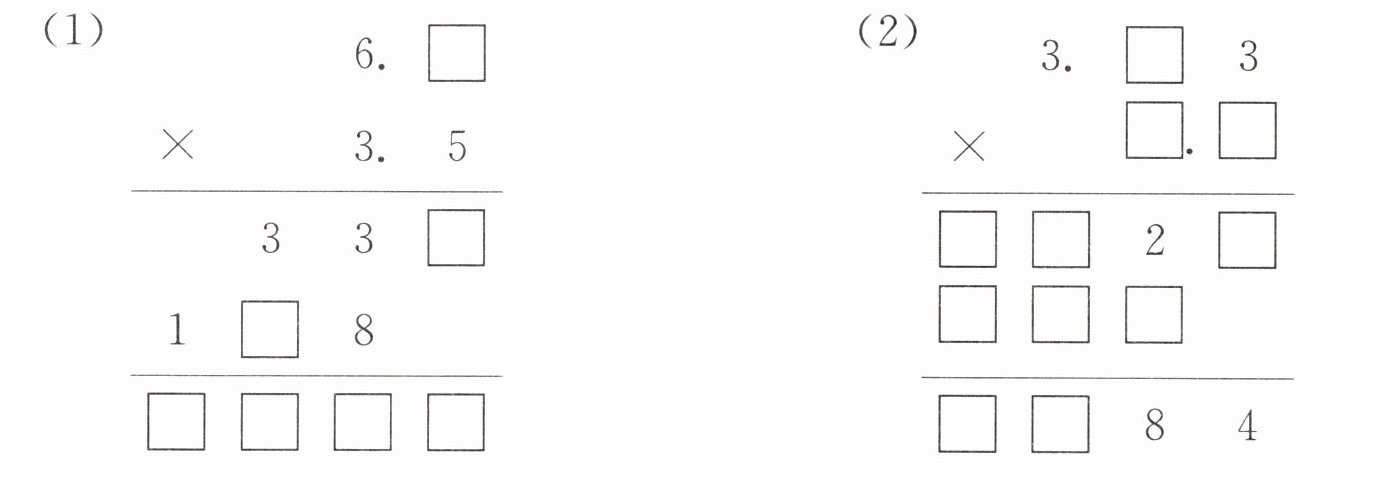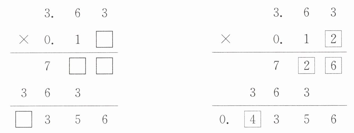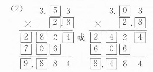 例 在左下图的$\square$里填上合适的数字,并添上小数点使算式成立。