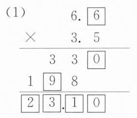 思路点拨 根据得数的最后一位数字是 6,所以 6 上面的$\square$中应填 6,则第二个乘数的最后一位数字是 2。从而可以计算出 7 右面相邻的$\square$里应该是填 2,积的$\square$里应填 4。又因为乘数中一共有 4 位小数,所以积也是 4 位小数,积的小数点应该从右往左数出四位,在前面添 0 再点上小数点。