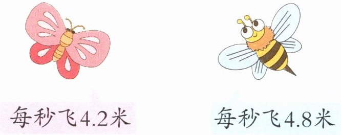 蝴蝶:50÷4.2≈11.9(秒) 蜜蜂:50÷4.8+2.5≈12.9(秒) 11.9<12.9,因为蝴蝶用时更短,所以蝴蝶获胜。