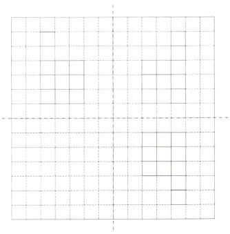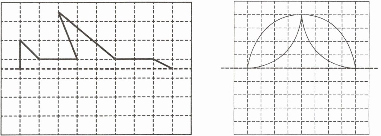 3. 在左下图的方格纸上画出轴对称图形的另一半。