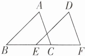 5. 如下图,小温将三角形ABC沿BC所在直线向右平移了4cm,得到三角形DEF,已知线段EC= 2cm,则线段BF的长度是()cm。