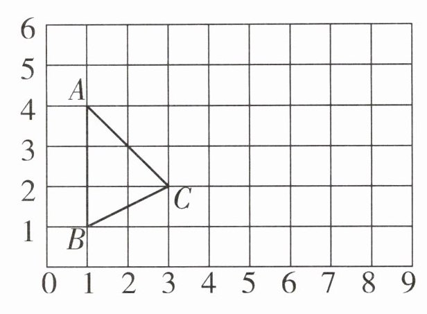 3. 如图,已知三角形ABC,将它向上平移2格,再向右平移4格,则顶点A的位置用数对表示是()。