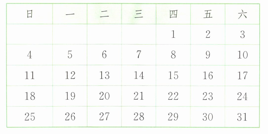 10. 小光和小红都利用课余时间去敬老院打扫卫生。小光每3天去1次,小红每5天去1次。2025年4月的最后一天两人正好同时去,5月几日他们又同时去?下面是2025年5月份的月历表,请在月历表上圈一圈。