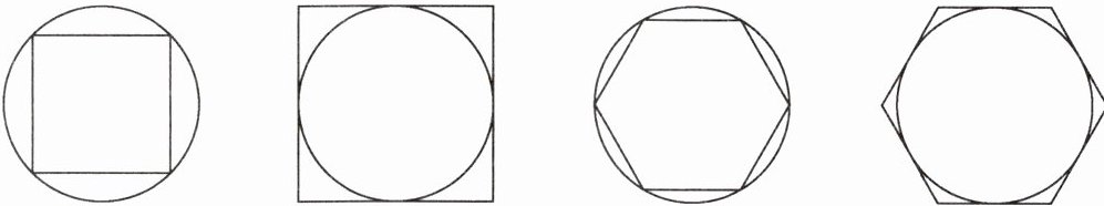 过程探索 1. 通过观察可知,这4个图形都是由圆和正多边形组合成的图形,并且圆心与正多边形的中心点重合。