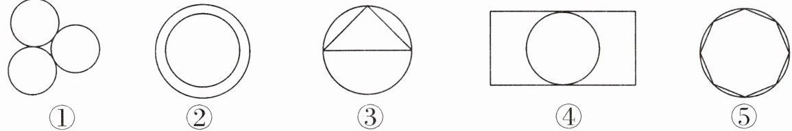 上面图形中,有1条对称轴的是();有2条对称轴的是();有3条对称轴的是();图形⑤有()条对称轴;图形()有无数条对称轴。