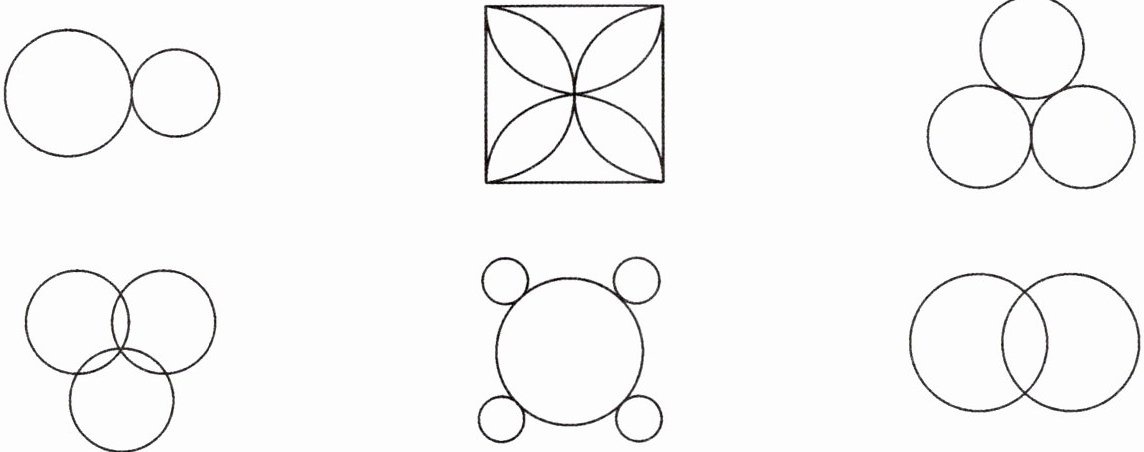 (1)画两个圆,要求这两个圆组成的组合图形有2条对称轴。