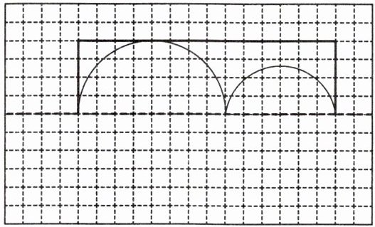 ②如果大半圆的直径是8cm,小半圆的直径是6cm,那么作图完成后整个图形中大长方形的长是()cm,宽是()cm。