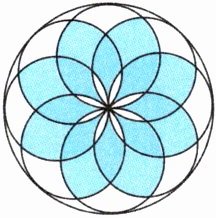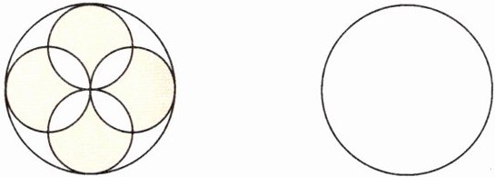 按照上述方法可以画出给定图案,设计的有趣图案示例(答案不唯一):用$4$个大小相同的圆组成类似风车的图案,四个圆两两相切且圆心构成正方形。