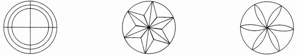 6. 照样子在右侧的两个图中用圆规绘出左侧两个美丽的图案。