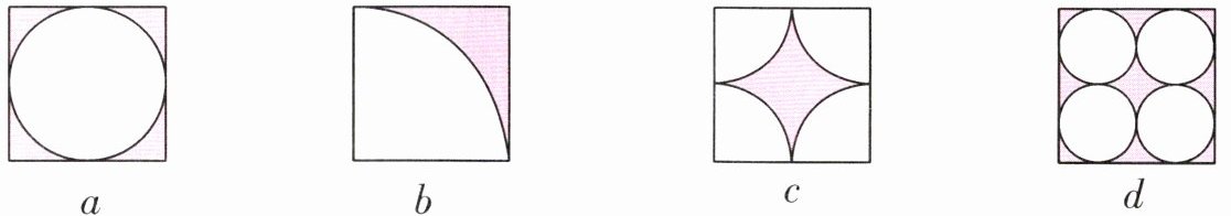 (3)如果下面每个正方形的边长都相等,那么各图中涂色部分的面积相比,()。